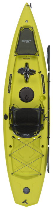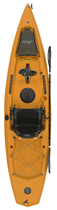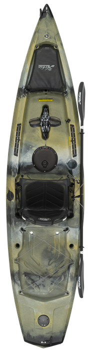 Simplicity defined, the Mirage Compass is now upgraded to both forward and reverse with the power of the MirageDrive 180 pedal system and Kick-Up Fins. Patented Kick-Up Fin Technology takes the worry out of kayaking in shallow, structure-filled waters by automatically retracting upon impact. Outfitted with a breathable mesh seat, the Compass offers maximum stability and an oversized cockpit and flat deck for standing. A sharp turning radius makes this fishing kayak nimble in tight quarters, yet able to speed over open water in stealthy fashion. Kayak fishing features include molded-in rod holders, H-Track accessory mounts and a transducer cavity ready for you to install a Lowrance® fishfinder. For a stealthy look, upgrade to the Compass Camo package that is outfitted with Kick-Up Turbo Fins and comes in Camo color.