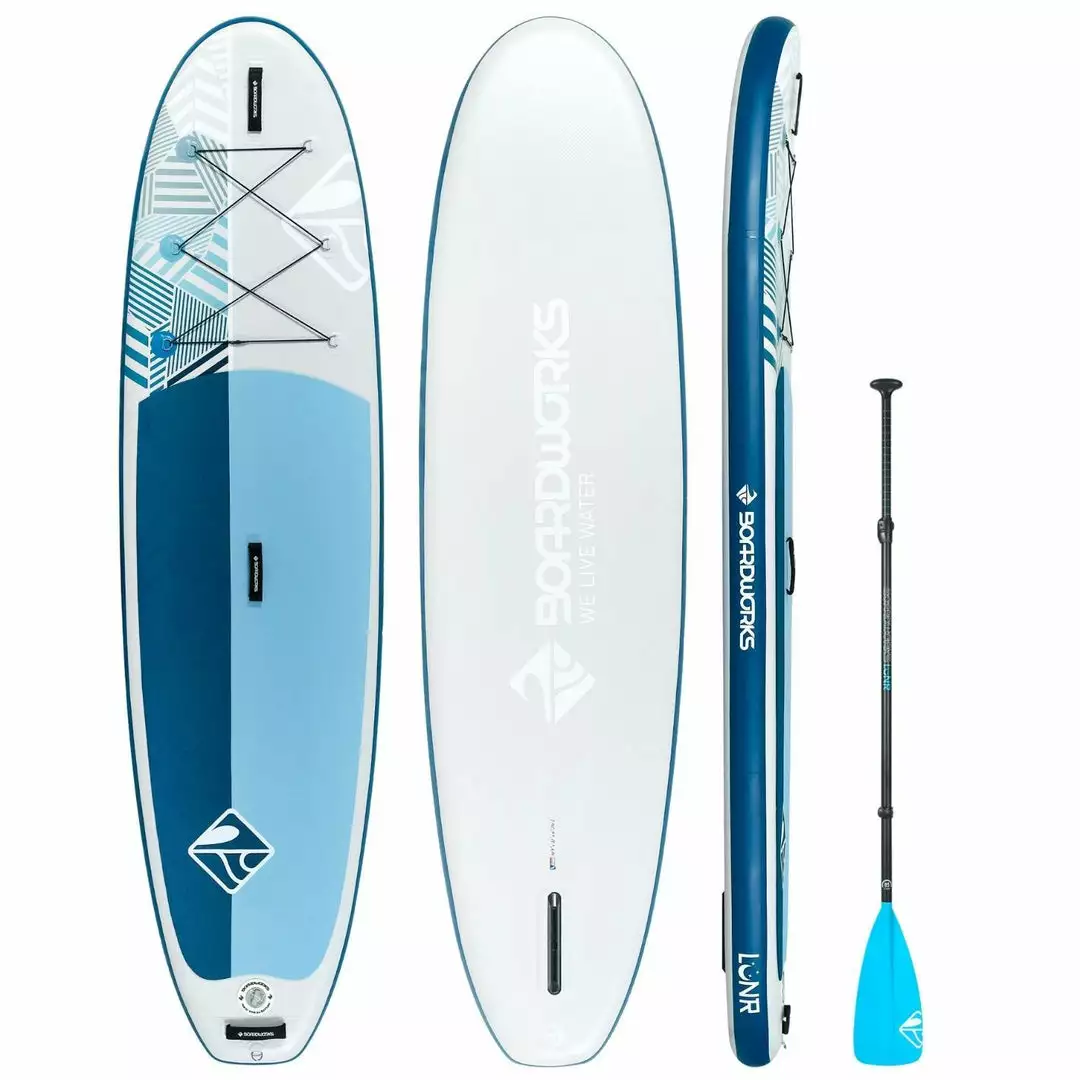 The SHUBU Lūnr is our brand-new entry-level inflatable recreational package designed to get you on the water fast and affordably. A lightweight, versatile board that loves to travel, the SHUBU Lūnr comes with our ultra-comfortable Honey Fomb heat embossed deck pad and neoprene carry handles for easy transport to and from the water. A single 9-inch standard SUP fin installs with an easy-to-use thumbscrew – no tools required.
