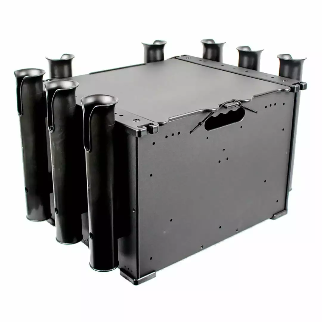 Ditch that old milk crate and upgrade your ride with the YakAttack BlackPak! This innovative crate and mounting system features 10 stations for rod holders. The rod holders can be accepted at various angles giving you a total of 50 possible configurations. The BlackPak’s top rails are compatible with MightyBolt accessories, eliminated the need for additional GearTracs or MightyMounts. The crate system fits perfectly behind your seat and can be modified to suit your fishing needs. The BlackPak is the ideal size for anglers who carry Plano 37000 tackle boxes. Drain holes and E-slots ensure your belongings don’t become waterlogged. Make sure you’ve got everything you need before you hit the open water with the YakAttack BlackPak on board your kayak!