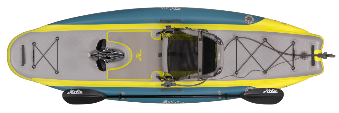 Built for everything from day trips to overnight escapes, this inflatable kayak with perched seating is the perfect choice for any adventure. Its high-performance lightweight construction boasts the speed, stability, and tracking of a rigid kayak without the extra weight. With a fitted weight of only 28 pounds, this lightweight inflatable easily packs away in a roller duffle bag. With everything you need all in one bag, skip the fuss and spend more time on the water. Ideal for RV, boat, and even airline travel! The iTrek 11 is unlike anything else on the water. Its unique design takes comfort to a new level with elevated seating featuring a cup holder and breathable nano-mesh fabric. Powered by the MirageDrive GT with Kick-Up Fins and integrated rudder for dual steering, the iTrek 11 is fun, nimble, and lightning-fast. Ambidextrous steering system allows steering handle to mount on the left or right side of the seat. Ultra-stable with a 400 lbs. carrying capacity. A true workhorse, the iTrek 11 features a rugged inflatable dropstitch hull with triple-chamber construction and EVA standing pads for improved traction. Attached to each side of the center chamber is a single-chamber pontoon providing you with an extra-wide platform for a stable ride. Its improved hull design increases total capacity, so you have plenty of room for all your gear. A four-piece paddle, high-pressure hand pump, electric pump and drink holder are all included inside an easy-load rolling travel bag that’s portable, stowable, and ready for your next adventure.