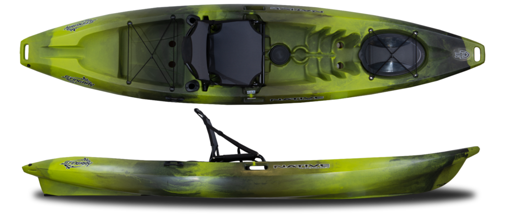 The new Stingray Angler rides high and dry and provides serious stability and comfort. The super stable hull design with a pronounced stern keel for excellent tracking rides nice in swells, waves and choppy conditions. The rockered and flared bow design is at home in coastal marshes, bays, lakes as well as cruising the local river. With molded-in handles around the kayak and a simple deck design full of functional features, you’ll find it a breeze managing this kayak on and off the water. The framed padded seat system provides incredible comfort, adjustability, and control during a day on the water.