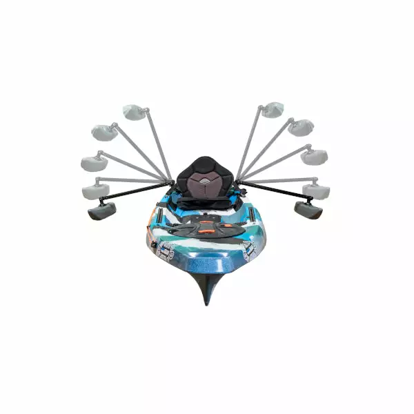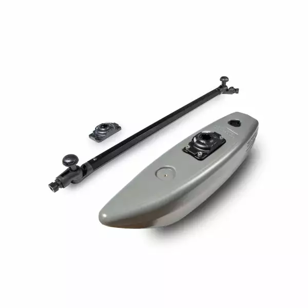 The new Gen 2 YakGear outriggers help you feel safe and secure in your kayak or canoe by utilizing the stabilizing effects of the re-designed floats. Stability while paddling is a problem for some paddlers. Whether you are standing to sight cast at fish, traversing through choppy waters, or paddling with the kids, the YakGear Outrigger system provides a more comfortable paddling experience. The YakGear Outriggers provide an easy to install safety net for everything from rocking back and forth to toppling into the water. This set comes with (2) outriggers, one for the port and one for the starboard side of your watercraft. The adjustable outrigger arms are 30 inches long and will provide a float base roughly 22 inches from the port and starboard side of the boat. The outriggers are attached by using a RAILBLAZA StarPort base mounted to the boat. The outriggers can be removed at any time making your watercraft easy to transport, leaving only the RAILBLAZA base. The adjustable outrigger arms can be raised independently if you are getting close to a dock or other obstruction. Installation placement of the outriggers may be mounted in the front or rear of your watercraft. The included floats have pre-installed threading (1/4 x 20 brass insert) to mount a RAILBLAZA StarPort HD (included) directly to the float, which is used to connect to the outrigger arms. These outriggers can attach to a canoe by using a piece of Hardie board (not included). These outriggers are best for total weights under 350 pounds. As always, this complete kit comes with all stainless steel installation hardware, installation instructions, and rigging tips from YakGear.